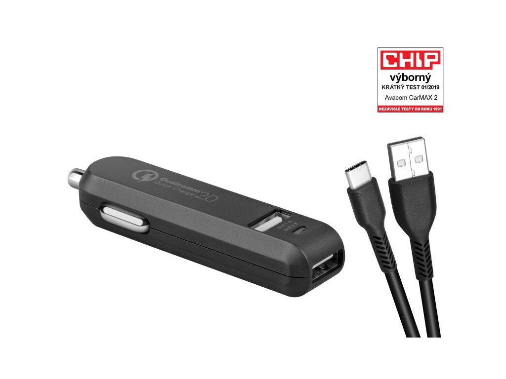AVACOM CarMAX 2 nabíječka do auta 2x Qualcomm Quick Charge 2.0, černá barva (USB-C kabel) - AVACOM NACL-QC2XC-KK